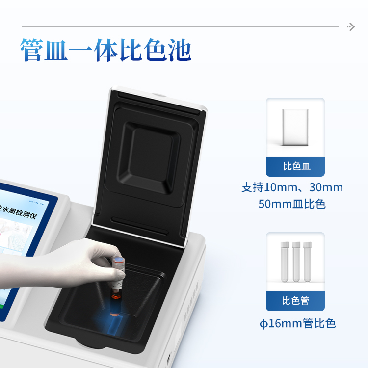 5、支持10mm、30mm、50mm皿比色和φ16mm管比色等比色方式,多元选择,确保测量的准确性;